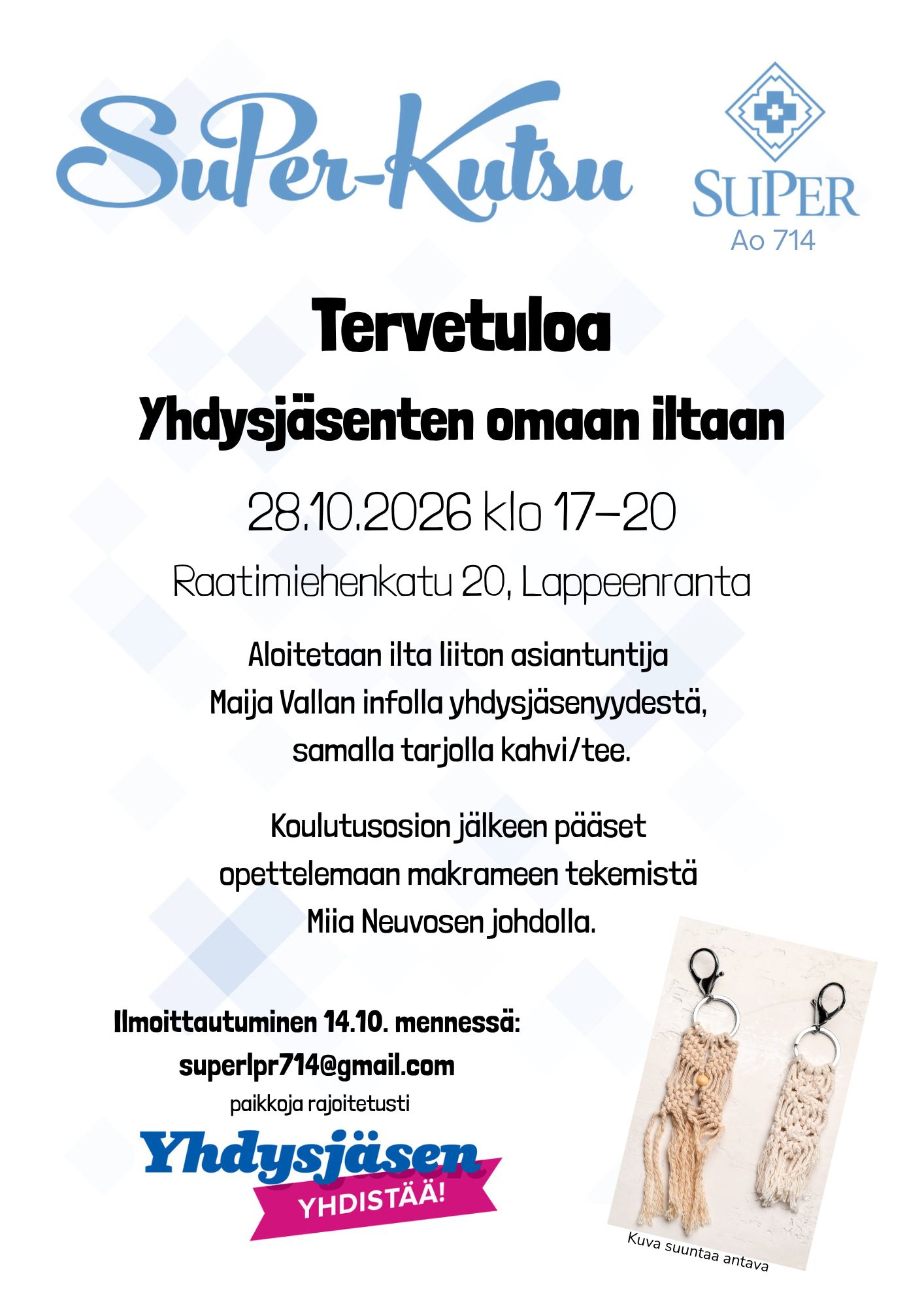 Tervetuloa mukaan yhdysjäsenten omaan iltaan 28.10.2025!