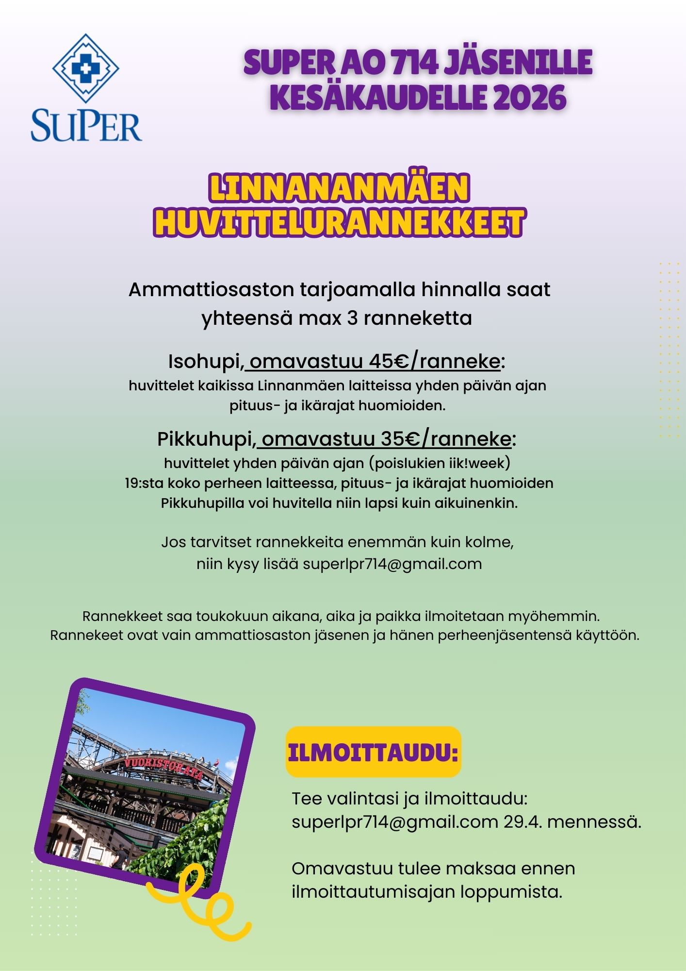 Ilmoittautuminen ja omavastuun maksaminen 29.4. mennessä: superlpr714[at]gmail.com